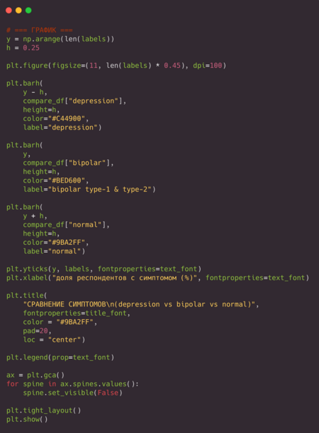 Полученные результаты исследования показывают, что различия между депрессией, биполярным спектром и нормой определяются не отдельными симптомами, а их сочетанием, выраженностью и характером взаимодействия.