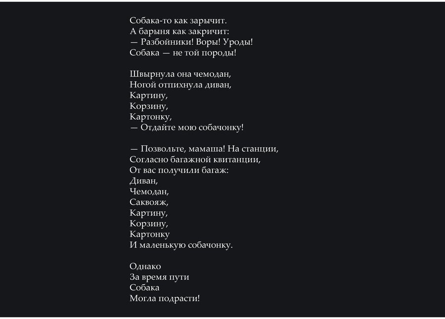Так как оригинальное произведение небольшое, мультфильм начинается с титров — стихотворения.