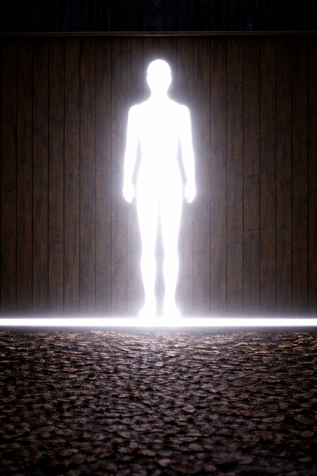 Используется проекция, для визуализации световой тени, так же линия света снизу символизирует длину жизни этой тени, и в итоге силуэт испаряется в ней
