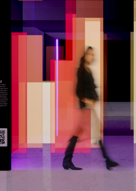 Стенд можно описать как «физическую версию» медиа «Большой город»: он показывает город как набор слоёв, голосов и траекторий, а бренд медиа выступает навигатором по этой сложной среде. «Большой город» прямо позиционирует себя как «друга горожанина, который знает город и его героев», и арт-объект переводит эту идею в пространство через многослойную архитектуру, свет и взаимодействие со зрителем.