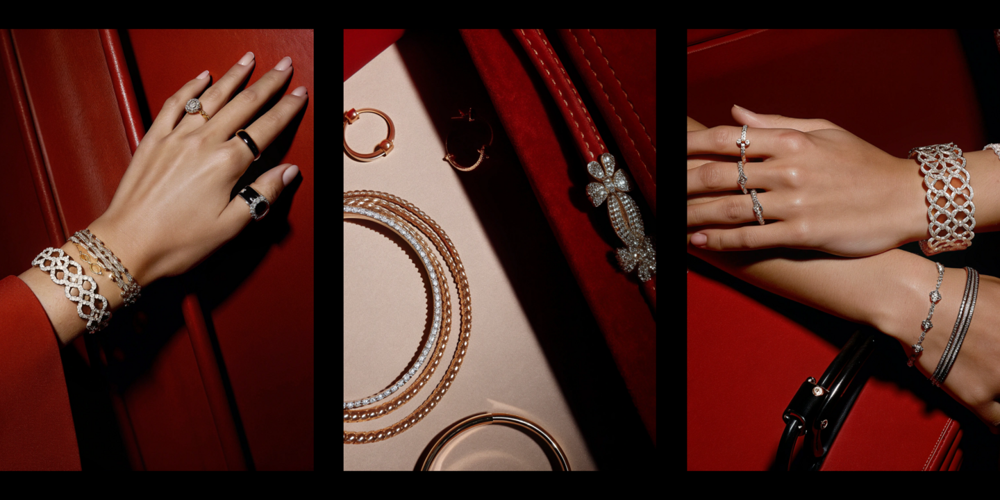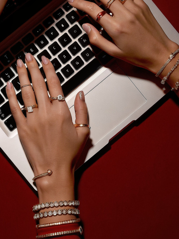Кроме того, для оформления проекта была использована нейросеть recraft.ai (https://recraft.ai/) (https://www.recraft.ai/projects), с помощью которой я создала обложку с элементами, подчеркивающими изысканный стиль и престижность бренда. promt: Сartier jewelry. Elegant hands adorned with shimmering rings and bracelets, typing on a sleek laptop against a rich, red backdrop.