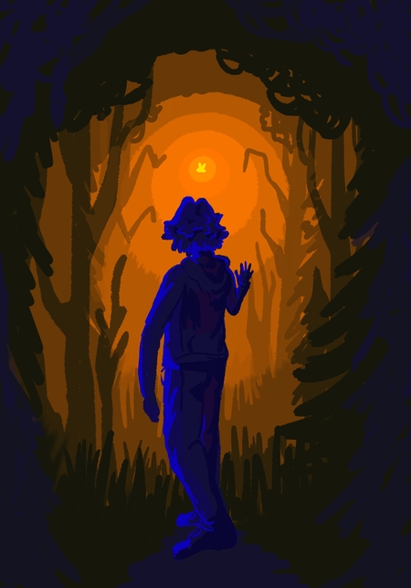 Чтобы передать гнетущую атмосферу дремучего леса, я намеренно использовала палитру глубоких, мрачных оттенков. А чтобы подчеркнуть таинственность, окутывающую это место, я прибегла к игре контрастных тонов.