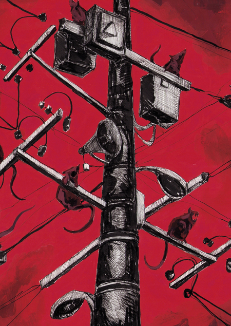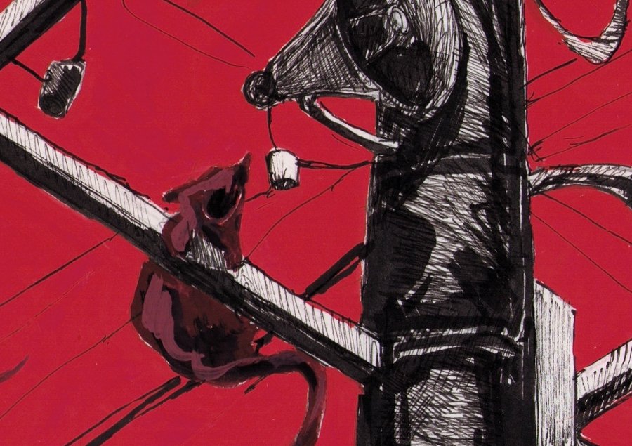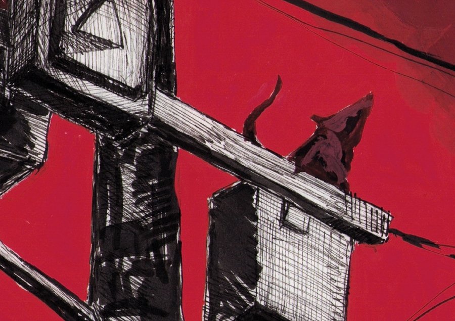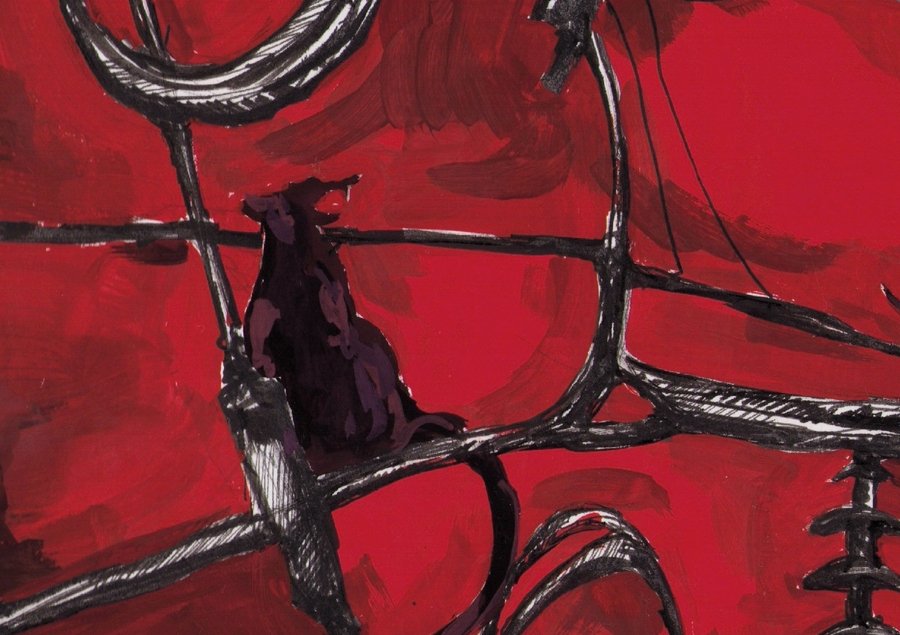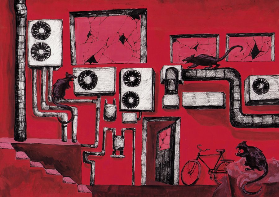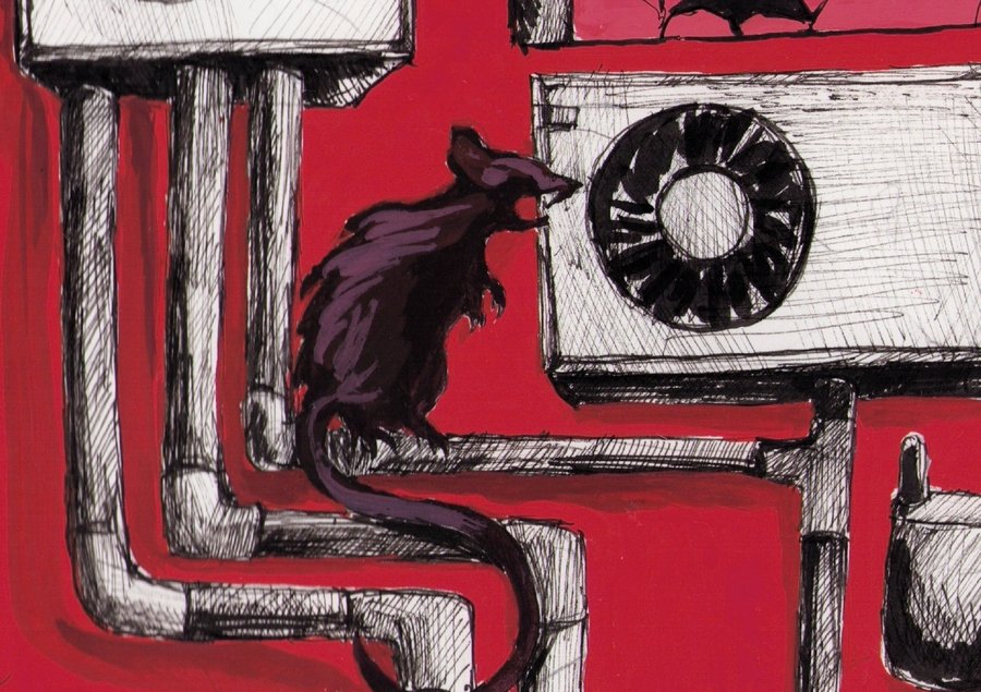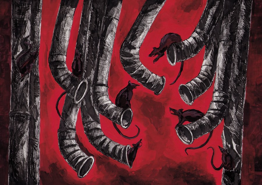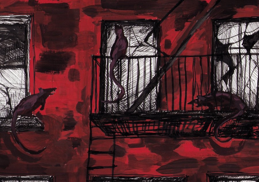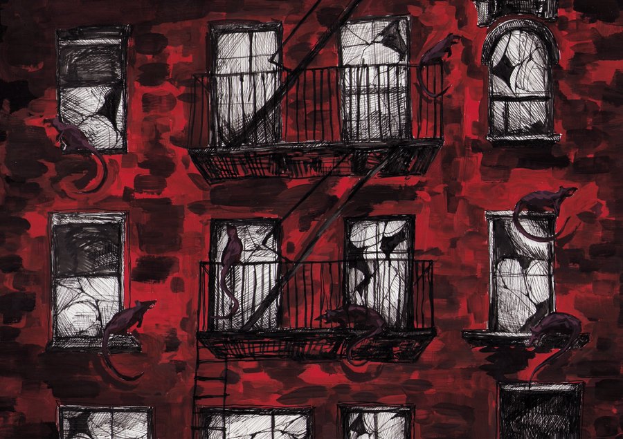 Что же видит в городе человек в тревожном состоянии? Все ему кажется жутким и неприятным: неблагополучные районы, ржавые трубы и битые стекла. Крысы, обитающие в этих районах словно заполняют все пространство, от чего становится ещё более тревожно.