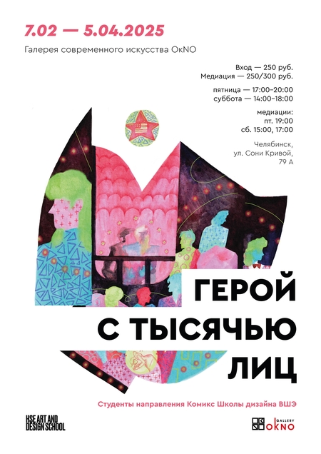С 7 февраля по 5 апреля 2025 года мои работы экспонировались на выставке «Герой с тысячью лиц» в галерее OkNo, совместно с другими учащимися направления «Комикс».