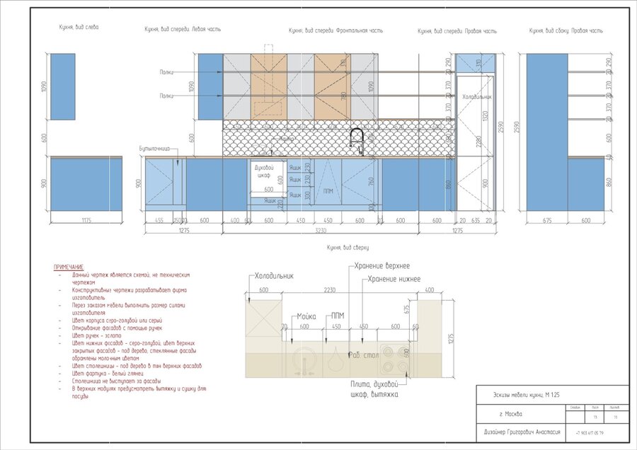 В зоне отдыха могут располагаться 2-3-4 человека и наслаждаться видами из окна. Здесь располагается мягкий диван и контрастирующее кресло. Ковер поддерживает узор гжели и серо-голубой цвет кухни.