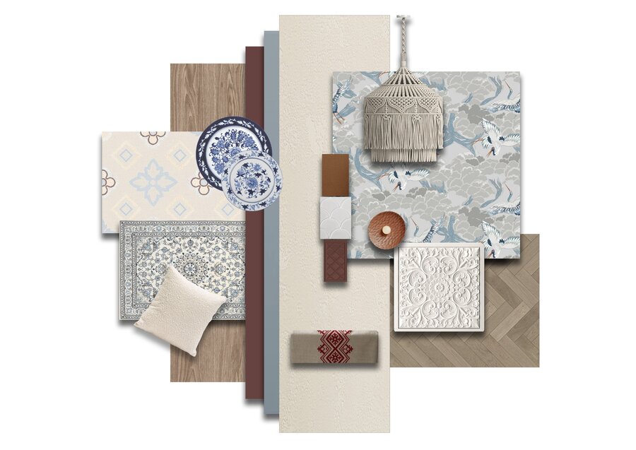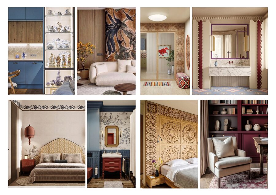 Референсы, мудборд и текстурная доска отражают элементы, фактуры, темы и цвета, характеризующие предпочтения хозяев относительно будущего интерьера.