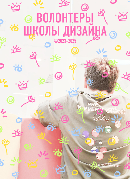 Примерно с 2023 года (своего 2 курса) я стабильно принимаю участие в волонтерской деятельности Школы дизайна.