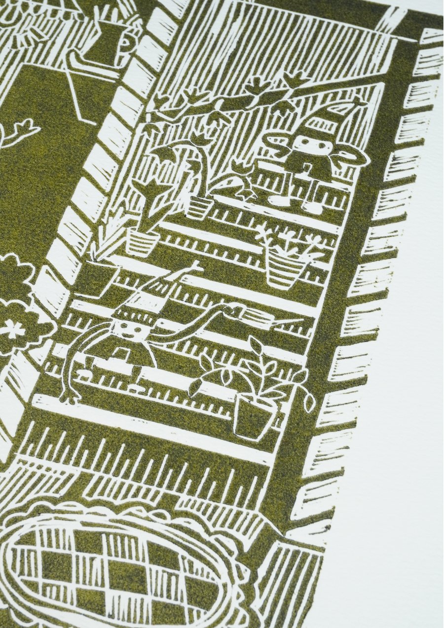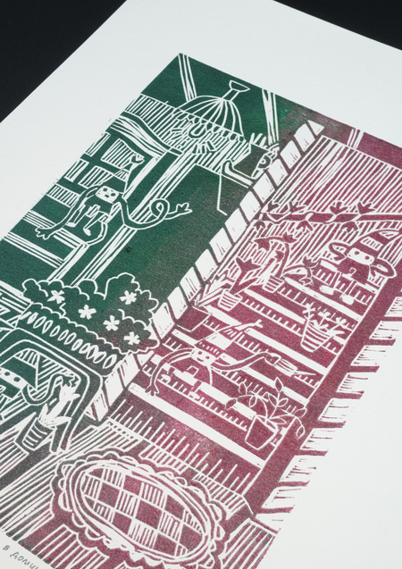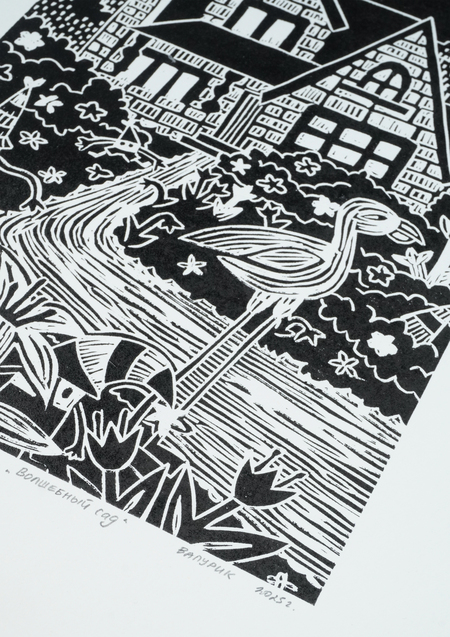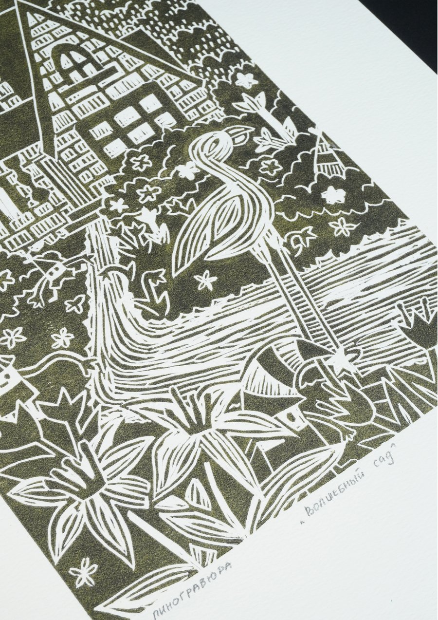 «Волшебный сад», 2025, линогравюра, размер: 29,7 см х 42 см