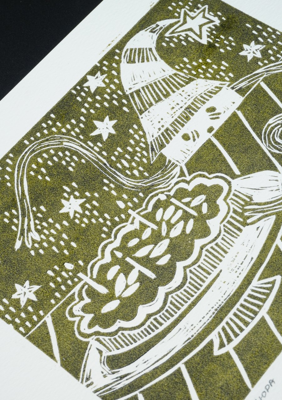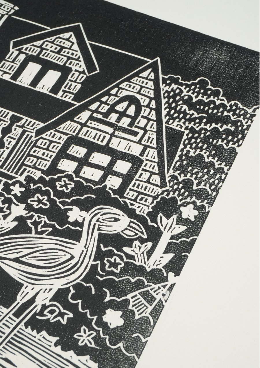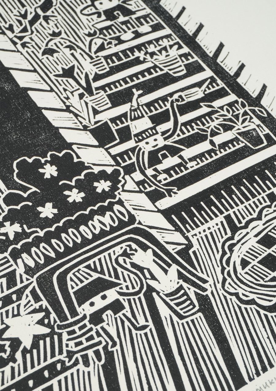 «Волшебный сад», 2025, линогравюра, размер: 29,7 см х 42 см