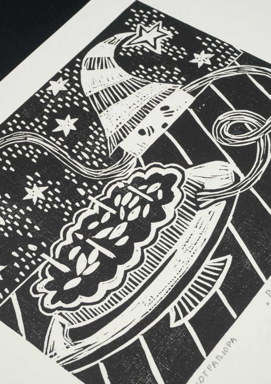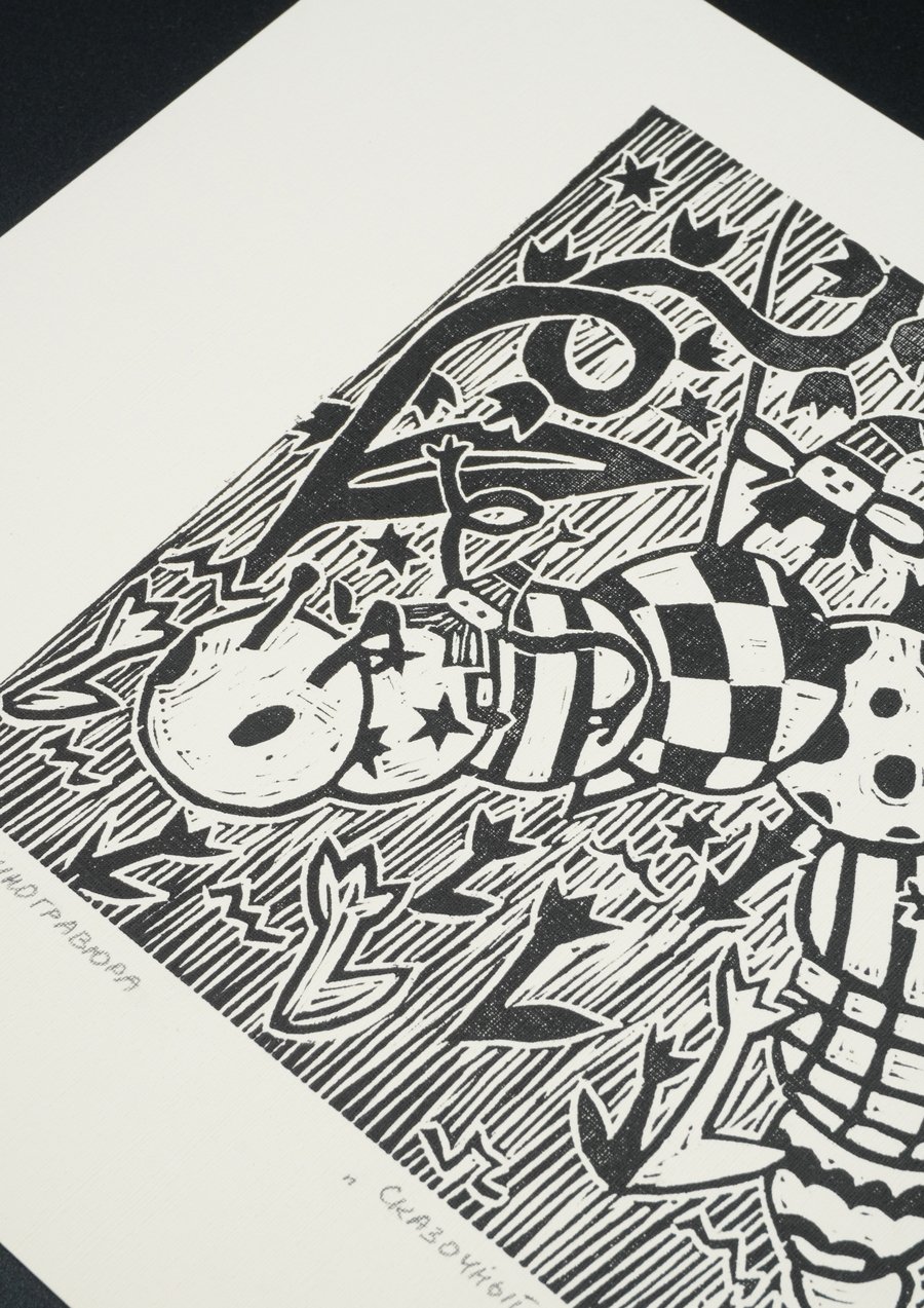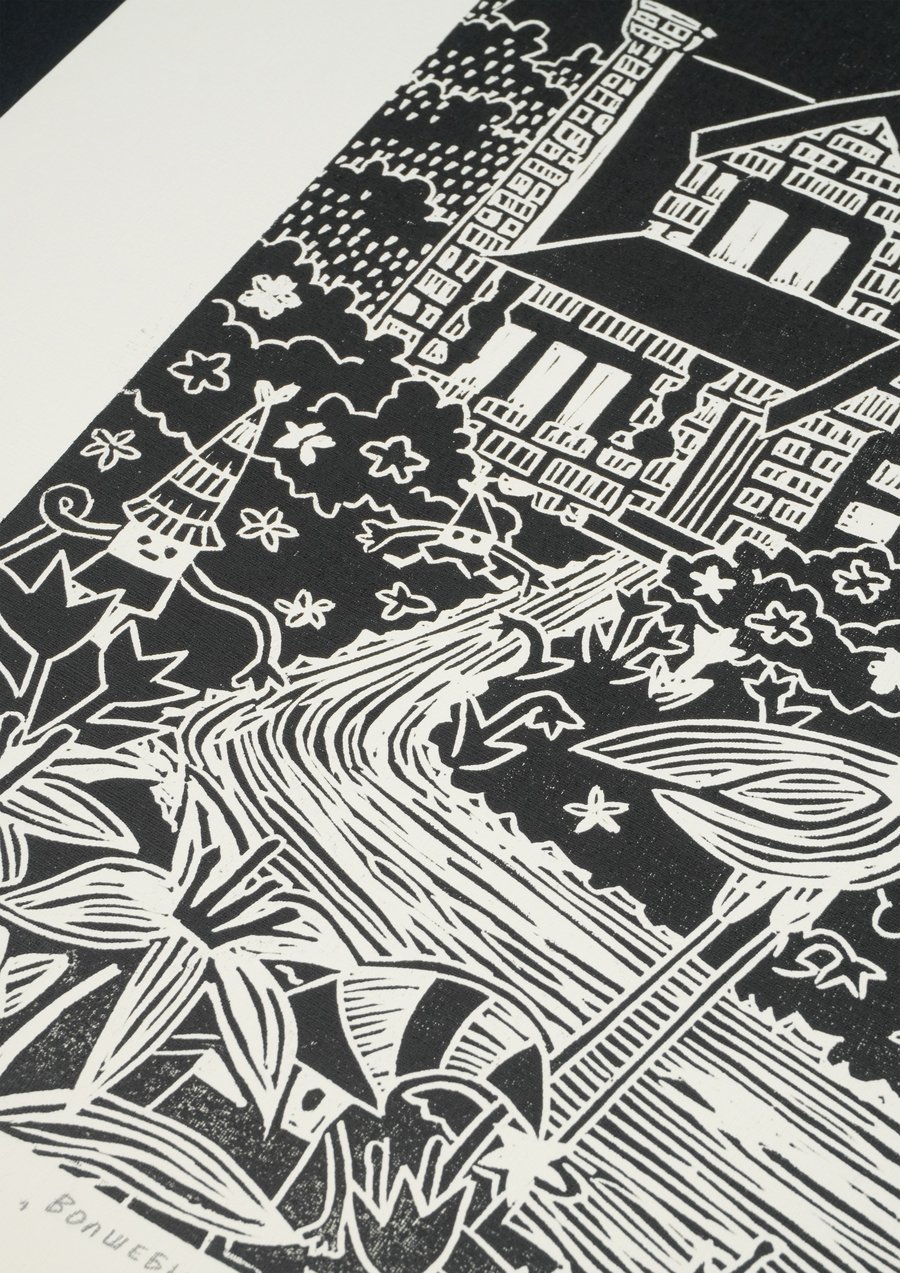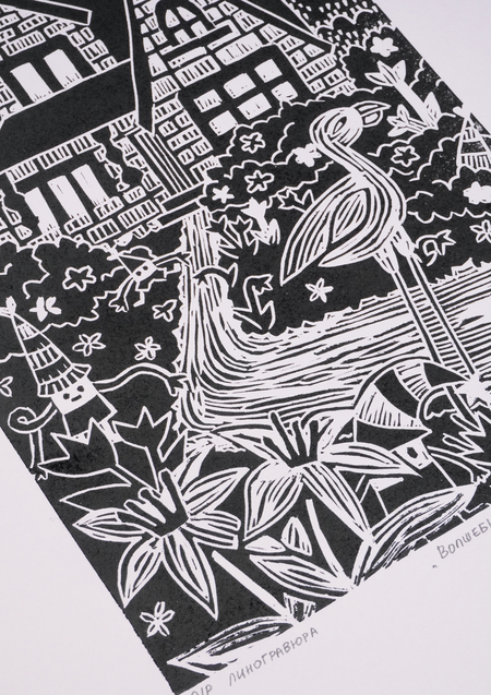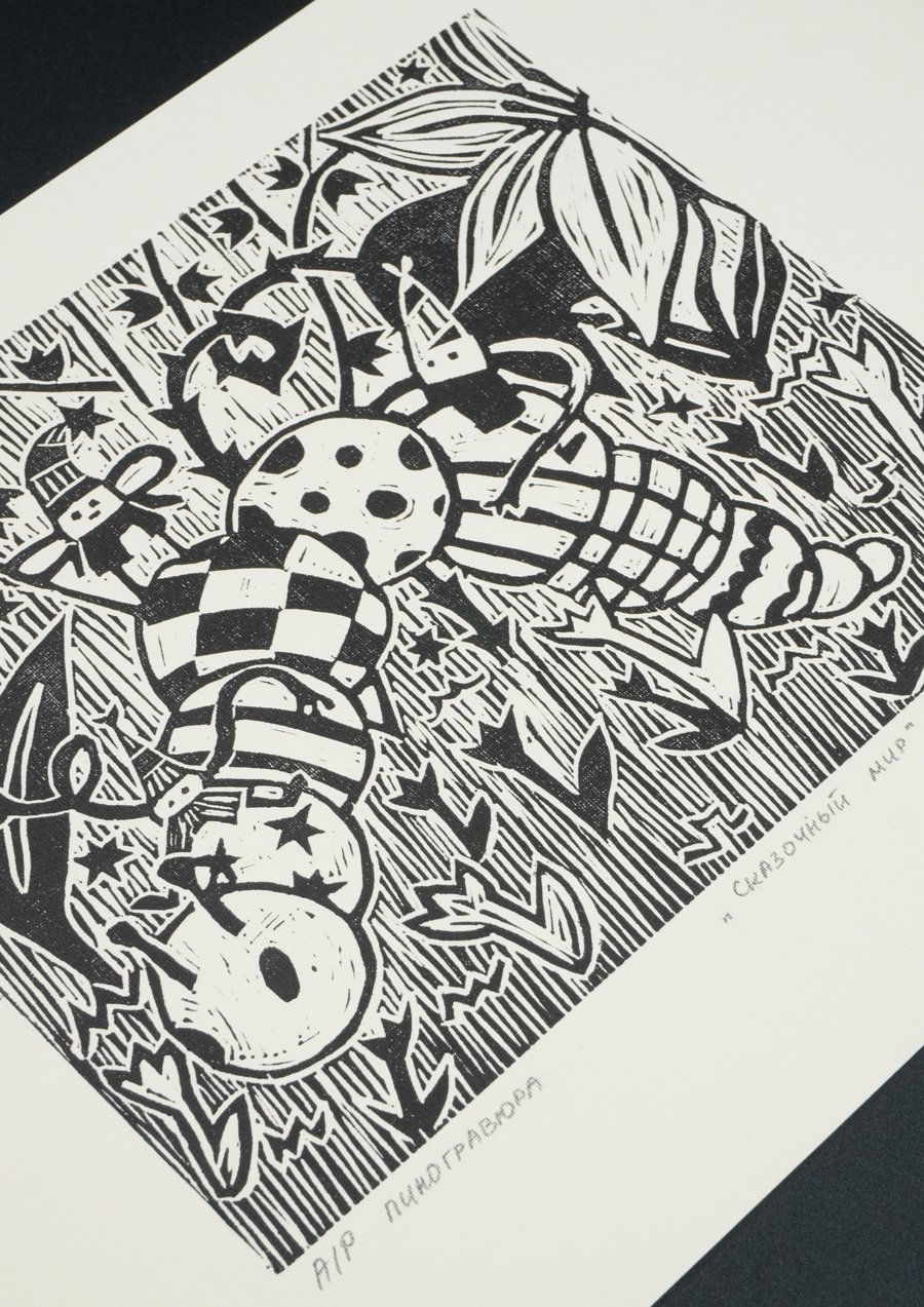 «Сказочный мир», 2025, линогравюра, размер: 29,7 см х 21 см