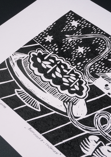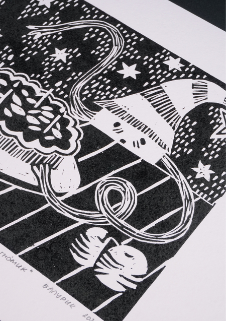 «Воришка-гномик», 2025, линогравюра, размер: 29,7 см х 21 см