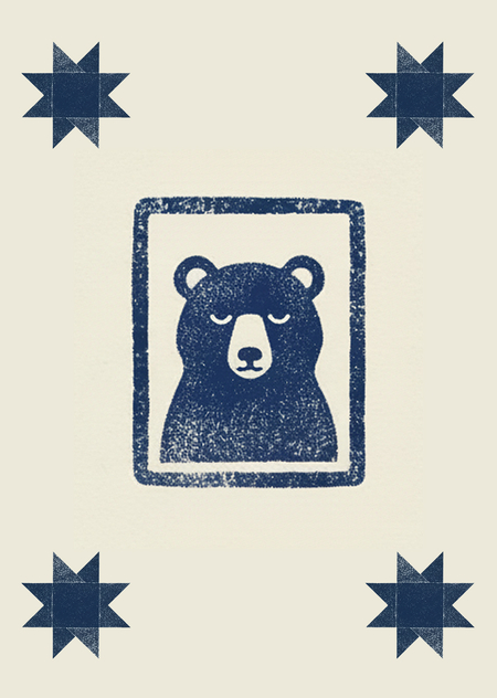 Промпт: простой логотип в виде медведя в рамке, выполненный в темно-синем цвете, в стиле гербовой печати, минималистичный дизайн с четкими линиями и простыми формами, иллюстрации в винтажном стиле, эффекты ксилографии и линогравюры — все это на белом фоне с простой композицией.