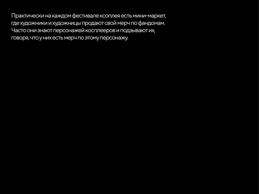 В этом проекте я хотела показать, как выглядит закулисье трех моих основных косплей-активностей — съемки дома, на студии и посещение фестивалей, — и запечатлеть мою любовь к этому делу.
