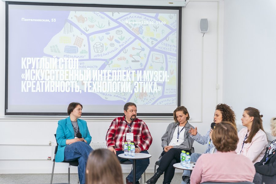 Модератором круглого стола «Искусственный интеллект и музеи: креативность, технологии, этика» выступила Катерина Запускалова — музеолог, креативный директор ВИЖУ, член ИКОМ.