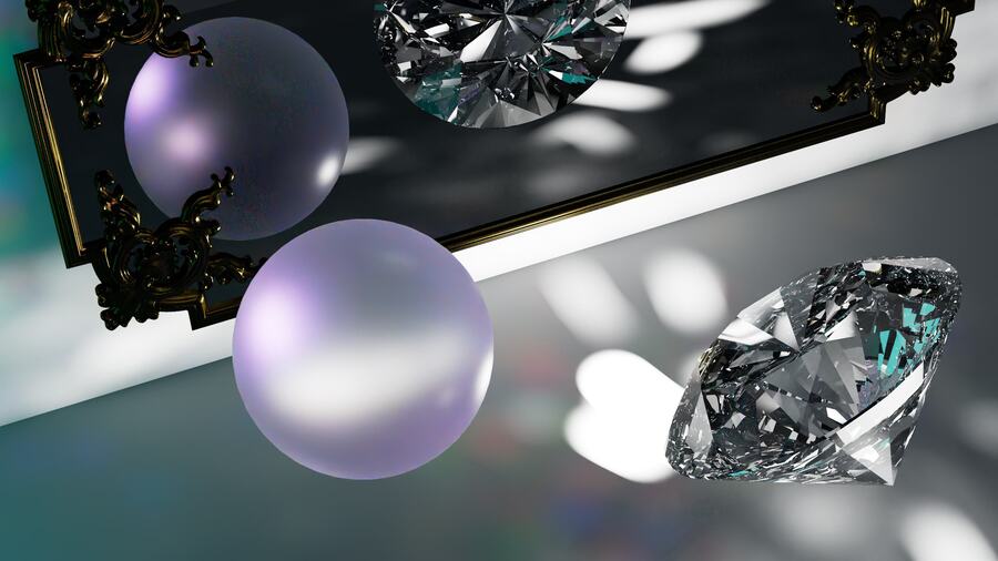 По мере увеличения лимитов становится доступно большее количество световых событий — отражений между гранями, последовательных преломлений внутри алмаза, глубоких переотражений между объектами и мягких переизлучений света в тенях. Это проявляется в постепенном усложнении оптической картины: усиливается блеск металлов, увеличивается яркость и насыщенность дисперсии, улучшается читаемость мелкой внутренней геометрии алмаза, появляются корректные вторичные блики и каустические рисунки.