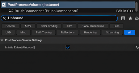 Демонстрация базовой настройки Post Process Volume в интерфейсе Unreal Engine