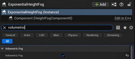 ! Чтобы активировать расчет объемного рассеивания света в Details у Height Fog необходимо подключить параметр Volumetric Fog