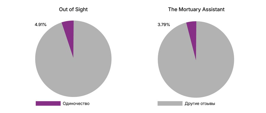 (круговые диаграммы отдельно по каждой игре демонстрируют соотношение отзывов про одиночество и изоляцию к остальным)