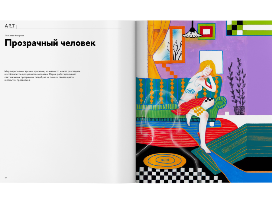 Мир переполнен яркими красками, но мало кто может разглядеть в этой палитре прозрачного человека. Серия работ проливает свет на жизнь прозрачных людей, на их поиски своего цвета и попытки проявиться.