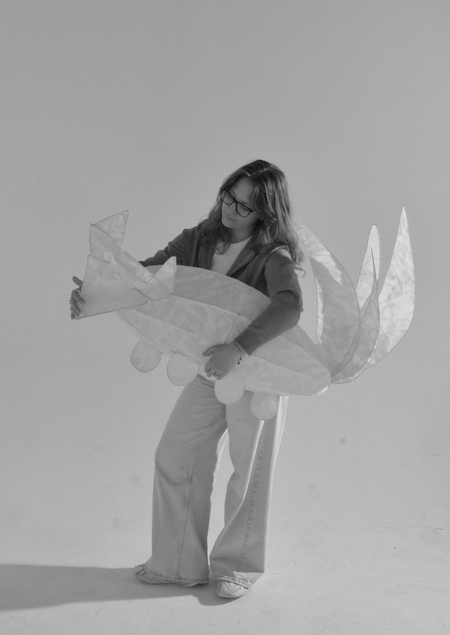 В основе моего арт объекта лежит одна из работ Артёма. На первый взгляд, перед зрителем воссоздаётя хрупкий образ из полупрозрачных текстур, за которым скрывается много боли и уязвимости — бесконечные перевязки, бинты и лечение. Однако, эти кусочки соединяются и первращаются в сказочный образ из детской фантазии, который приглашает нас ближе познакомится с внутренним миром ребёнка-бабочки.