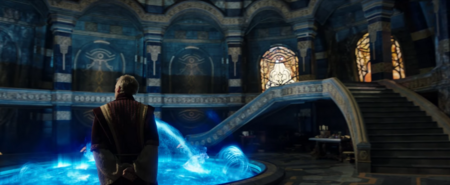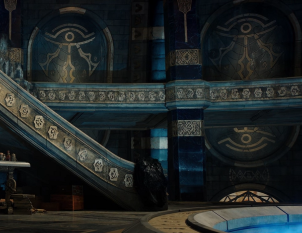 Само помещение Совета хранителей создаёт впечатление космической станции, парящей в воздухе. Особенно инопланетного происхождения представлены подвесные, напоминающие веретена, элементы с ажурной резьбой.