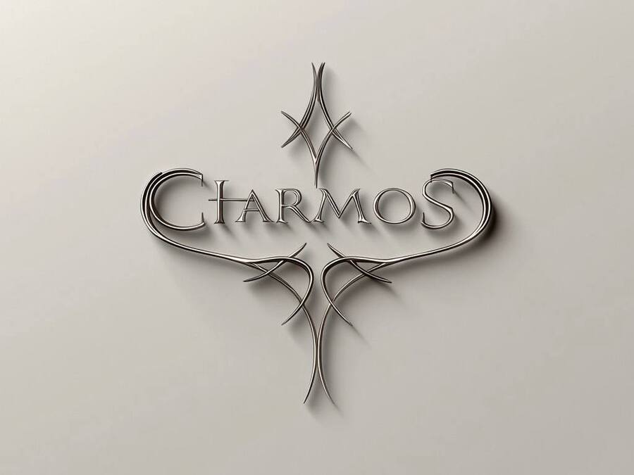 /imagine prompt: Design a high-end, sophisticated logo with the word 'Charmos' in an elegant serif font. The lettering should have smooth, refined curves with a metallic silver finish on a neutral or light gray background. Incorporate subtle neo-tribal and barbed wire-inspired elements, such as delicate line accents or sharp details around certain letters, to convey exclusivity and luxury. The style should be minimalist yet intricate, with a modern and artistic aesthetic suitable for a premium jewelry brand. The overall look should be similar to classic luxury branding, with a touch of edgy sophistication.