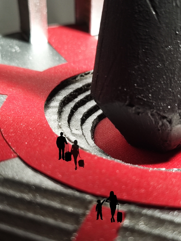 Аэропорт «Притяжение» — проект внутреннего дизайна посадочного холла аэропорта. Главной визуальной задачей является противопоставить легкое и светлое небо тяжёлой и темной земле: для передачи этого ощущения в проекте используется масштаб, грубые материалы, темные цвета и земные фактуры.