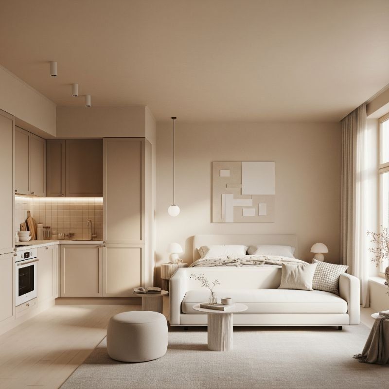 - Стремление к визуальной чистоте: люди выбирают спокойный интерьер, чтобы компенсировать информационные перегрузки внешнего мира. - Универсальность: бежевый легко сочетать с любыми материалами — деревом, камнем, текстилем. - Эстетическая безопасность: этот цвет почти невозможно «испортить», он подходит разным возрастам и стилям жизни