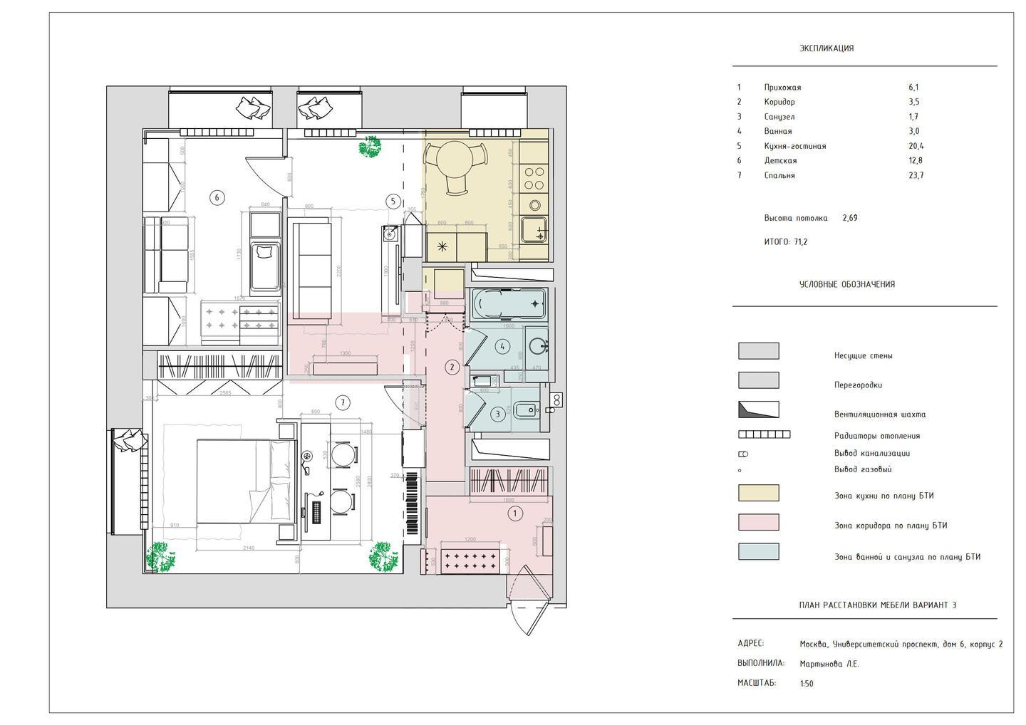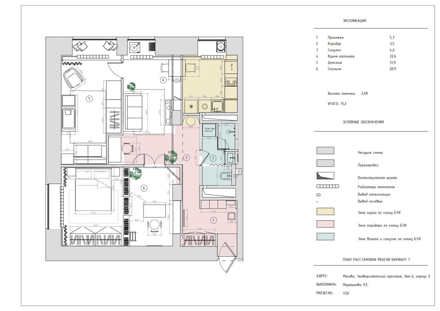 Дизайн интерьера трехкомнатной квартиры на Университетском проспекте.