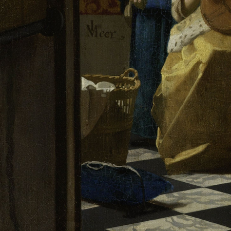 Вермеер также использует освещение, чтобы усилить этот эффект: зритель смотрит на происходящее из темноты, как будто нарочно там спрятался.