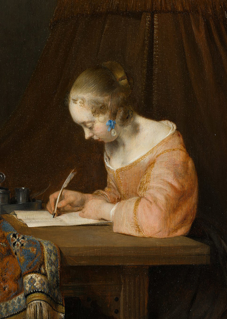 Терборх, Г. Женщина, пишущая письмо [Изоматериал]: [около 1655 г.] // Wikimedia Commons: [сайт]. URL: https://upload.wikimedia.org/wikipedia/commons/0/06/Gerard_ter_Borch_-Woman_Writing_a_Letter-797-_Mauritshuis.jpg (дата обращения: 22.11.2025).