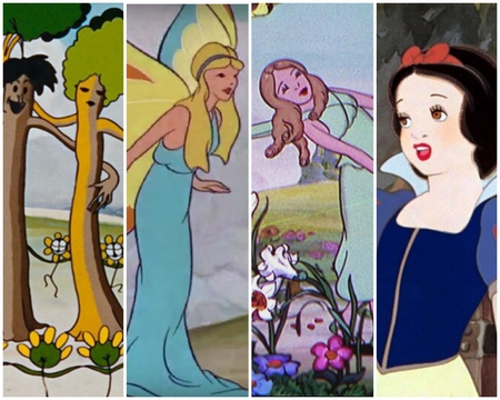 Эволюция рисования девушек на примере феи из мультфильма «Летающий мышонок», 1934 г. и Белоснежки 1937 г.
