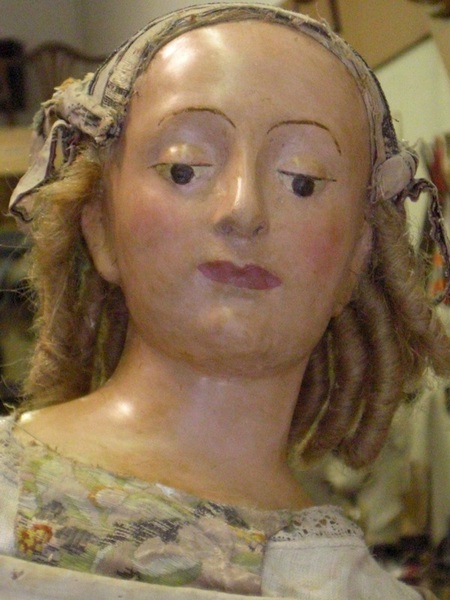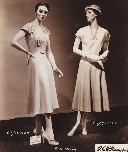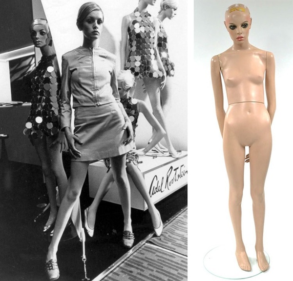 слева: манекен-двойник модели Твигги, 1960е справа: женский манекен 1950х годов