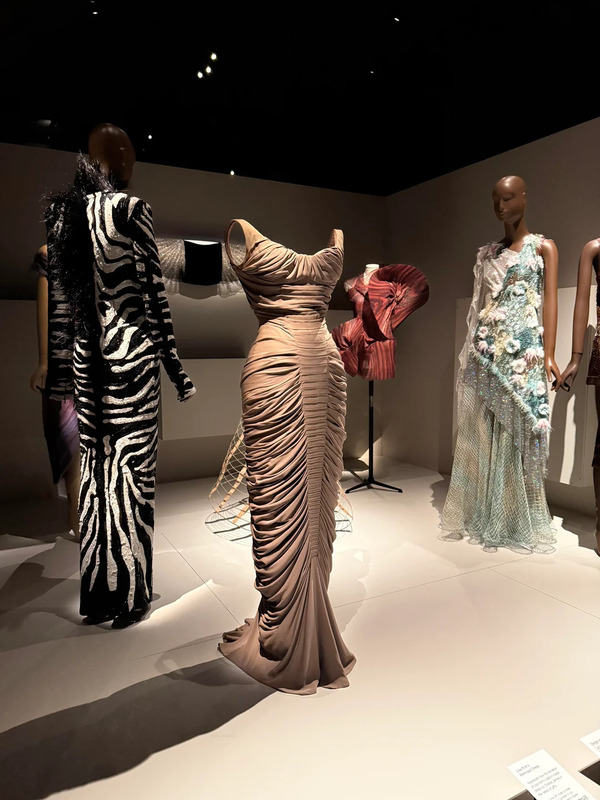 В последнее десятилетие наблюдается стремление совмещать материальное и цифровое. На выставках можно увидеть реальные вещи в сочетании с архивными видеоматериалами — например, фрагменты подиумных шоу, где эту одежду носили модели. Такой контраст подчёркивает разрыв между живым телом прошлого и музейной статичностью настоящего, но при этом создаёт эффект двойного присутствия: зритель видит и пустую форму, и её живую историю. Этот подход делает фэшн-выставки более эмоциональными и позволяет лучше понять, как одежда существовала в движении, а не только в экспозиционной тишине.