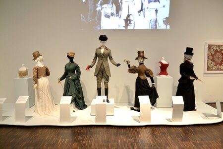 Первые попытки выставлять одежду в музейном пространстве относятся к XIX веку, когда европейские музеи начали систематически собирать костюмы. Эти ранние экспозиции были ориентированы прежде всего на исторический или этнографический интерес: одежда представлялась как свидетельство быта народов, классов или эпох, а не как объект, связанный с конкретным телом или личной историей. Манекены того времени выполняли роль простых опор — деревянных или гипсовых, лишённых пластичности и индивидуальных черт. На них одежда выглядела застывшей и мёртвой, словно повешенной на подставку. Тем самым тело полностью исключалось из показа, а одежда воспринималась как оторванная от живой практики, не взаимодействующая с человеком.