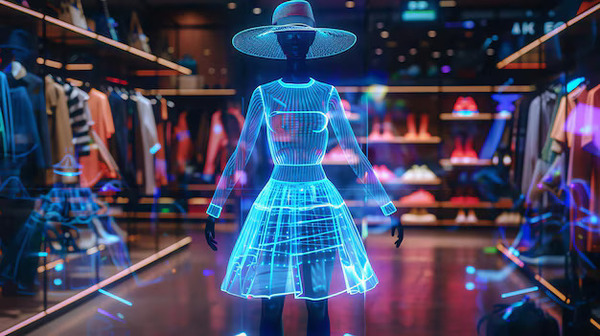 Голограммы и проекции дают возможность показывать одежду в динамике без физического манекена. Например, платья могут «парить» в воздухе, а проекция силуэта создаёт ощущение движения и объёма. Такая стратегия позволяет зрителю воображать тело внутри одежды и воспринимать её как живой объект. Этот приём особенно эффективен для сложных конструкций, воздушных тканей или дизайнерских вещей, где важна динамика и взаимодействие с пространством.