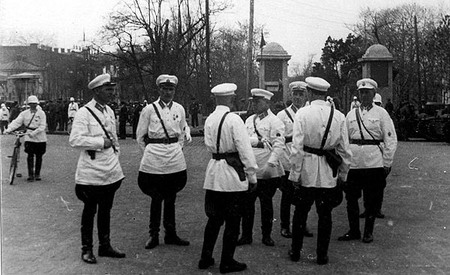 По сути, форма милиции отличалась от формы красной армии только нашивками.