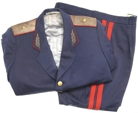 После окончания войны была введена новая форма. Обмундирование от 12 сентября 1947 г. отличалось красочностью и ассоциативностью с формой царских городовых. Главным атрибутом милицейской формы того времени стал двубортный мундир со стоячим воротником, застегивавшийся на два ряда по шесть пуговиц с пятиконечной звездой, по борту и воротнику обшит красным кантом. До конца 60х годов данный образец формы постепенно упрощался.