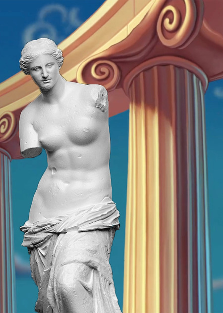 Городской ландшафт в мультфильме действительно отражает практику Древней Греции. Статуи часто становились частью архитектурных комплексов.