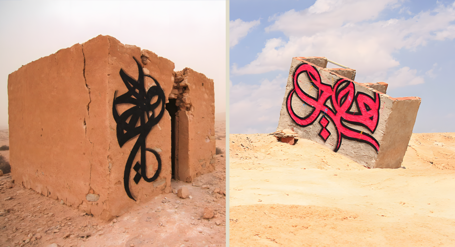 eL Seed в Дохе, Катар, во время проекта Salwa Road, 2013
