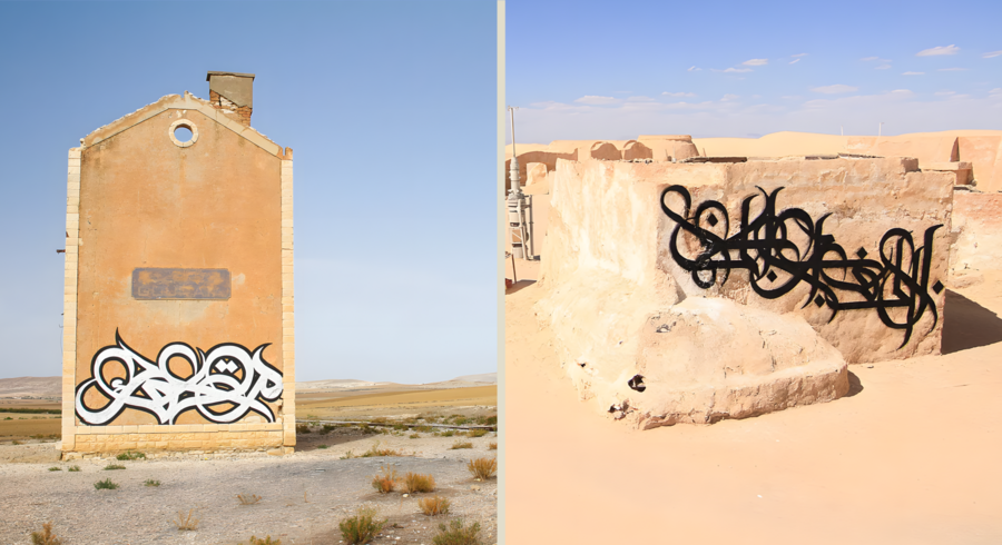 Сегодня вместе с развитием уличного искусства арабские буквы выходят за пределы мечетей и манускриптов. Появляется calligraffiti — гибрид классической каллиграфии и граффити-культуры, в котором традиционная линия осваивает бетонные стены, мосты, дорожную инфраструктуру и временные городские поверхности.