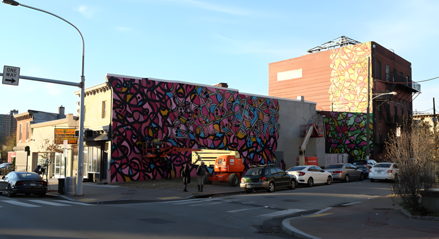 В Soul of the Black Bottom тот же язык включается в совершенно другой сюжет. Стена в Западной Филадельфии обращена к памяти района Black Bottom — афроамериканского квартала, который в середине XX века был практически полностью уничтожен под видом «реновации» и расширения университетской застройки. Сейчас на этом месте — новые корпуса и широкие улицы, а прежняя жизнь сохраняется в рассказах жителей и исследованиях. Мурал работает как точка, где эти невидимые слои снова проявляются на поверхности города.