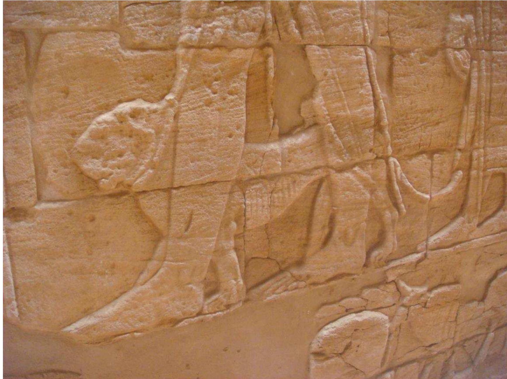 В Среднем царстве длинные, напряжённые мышечные жгуты выделяются своими острыми краями, в то время как в Новом царстве форма мужских ног часто напоминает женские. Это соответствует женственности второй половины этого периода, которая настолько сильна, что зачастую только по обрезкам можно определить, мужчина это или женщина; иногда даже специалист не в состоянии определить, насколько повреждены фрагменты.