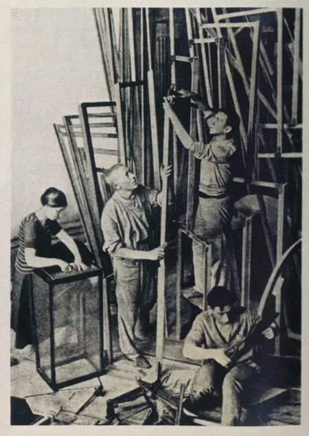 Многие агитационные конструкции задумывались как сборно-разборные т. е. их можно было поставить на крыше гостиницы или грузовика, перевезти в деревню, превратить в походную библиотеку или выставку. Конструктивистский объект был не монументом на долгие годы, а объектом в постоянно меняющейся среде.