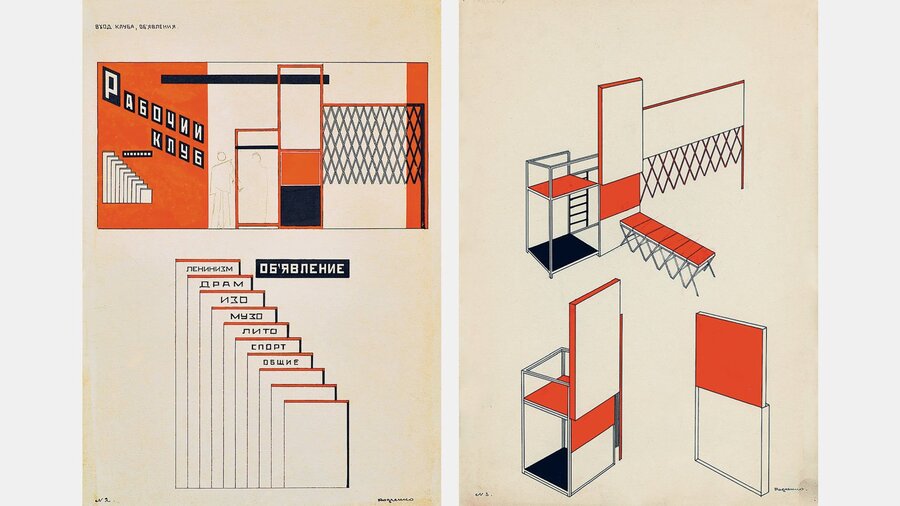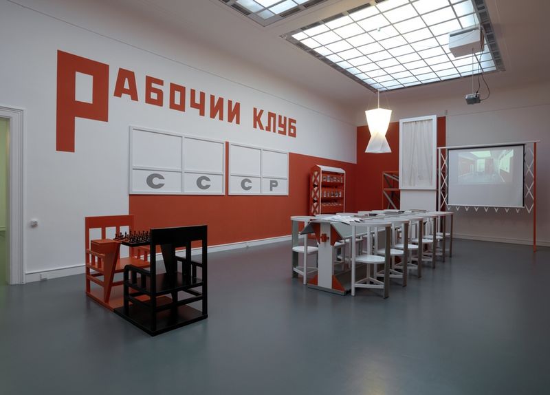 Рабочий клуб Родченко — это уже не монумент, а интерьер, но по степени уникальности задумки он не уступает башне Татлина. Клуб представляет из себя комнату, оборудованную как многофункциональная машина для просвещения: чтение, собраний, лекций и игр.