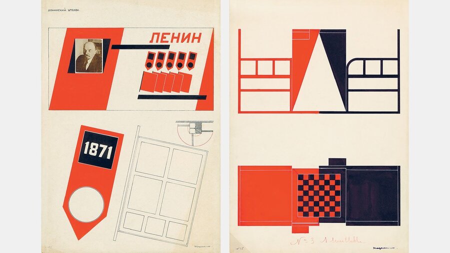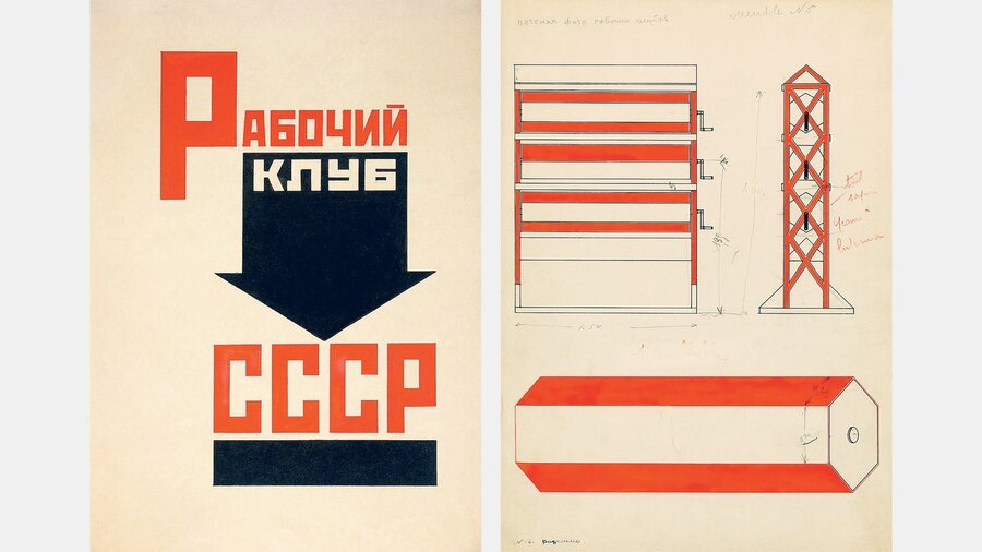 В текстиле, костюмах, плакатах, оформлении клубов конструктивисты используют тот же набор простых форм, что в архитектуре: