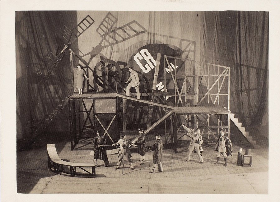 Мейерхольд говорит: «Конструктивизм потребовал от художника, чтобы он стал и инженером». В театре это особенно заметно. Здесь предметно-вещественное окружение рассматривается как инструмент, а вещи перестают быть фоном и становятся партнерами актера: на них забираются, с них прыгают, по ним отмеряют ритм биомеханических этюдов.