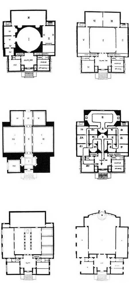 Ключевыми факторами различий становились свет, цвет стен и высота подвески. Если RA опиралась на равномерное верхнее освещение, создающее впечатление единой декоративной массы, то независимые площадки стремились использовать направленный свет и более низкую развеску, позволяя зрителю взаимодействовать с каждым произведением индивидуально. Сравнение архитектурных схем двух типов залов показывает, что официальные и альтернативные пространства не просто отличались эстетически — они формировали разные модели визуального опыта.