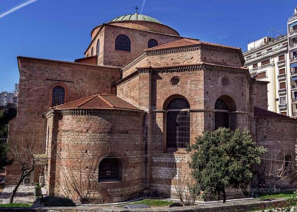 Архитектурные особенности: • Преобладание крестовокупольной структуры (например, храм Святой Софии в Салониках). • Использование кирпича и мозаичных техник. • Богатое внутреннее убранство, украшенное фресками и иконами. • Влияние античной архитектуры проявляется в применении колонн и соблюдении пропорций.