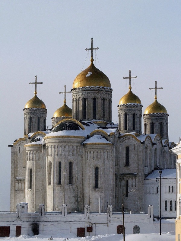 • Крестово-купольные храмы с четырёхлепестковой планировкой. • Каменная кладка с резьбой по камню. • Купола на высоких барабанах с арочными окнами.